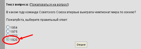 1. Пользователю задают вопрос, и если он неверно отвечает (1920 году СССР еще не существовал)