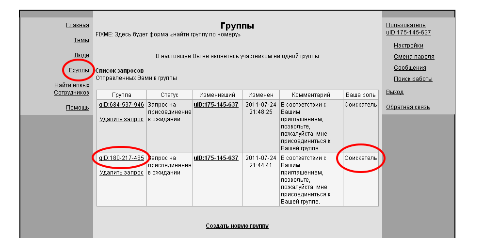 4. А в разделе группы появится поданный запрос и его текущий статус «Соискатель». Там же если студент передумал он всегда может отменить свой запрос, например чтобы подать его вторично, с исправленной фамилией…