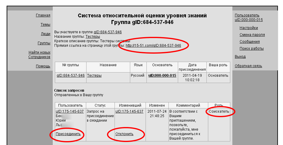5.2. В списке поданных в группе запросов видите не рассмотренные запросы, проверяете профили студентов, подавших запросы, если профили не вызывают подозрений, жмете ссылку «присоединить», если вы не хотите присоединять этого соискателя, то жмете «отклонить»