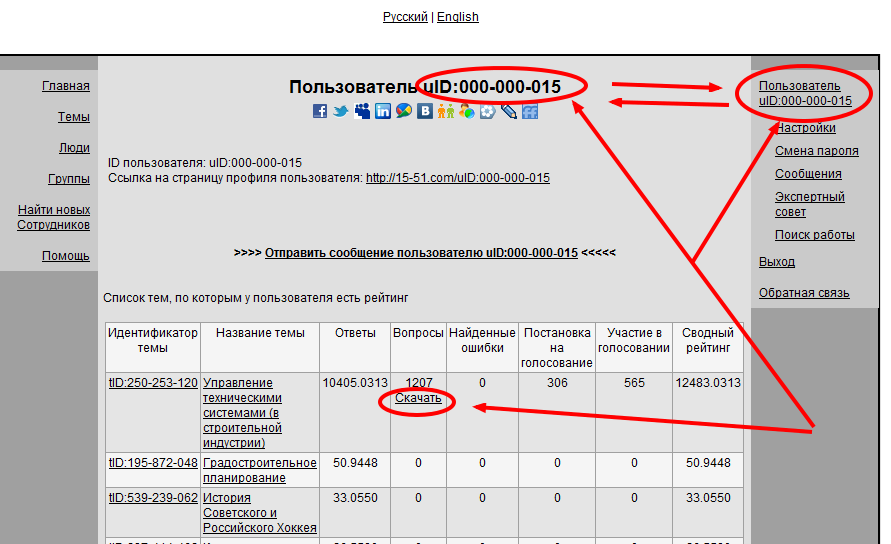 Обратите, пожалуйста, внимание, что ссылка «Скачать» появляется только у авторизованных пользователей при просмотре своего профиля, в случае если на эти вопросы уже кто-то отвечал, например сам автор